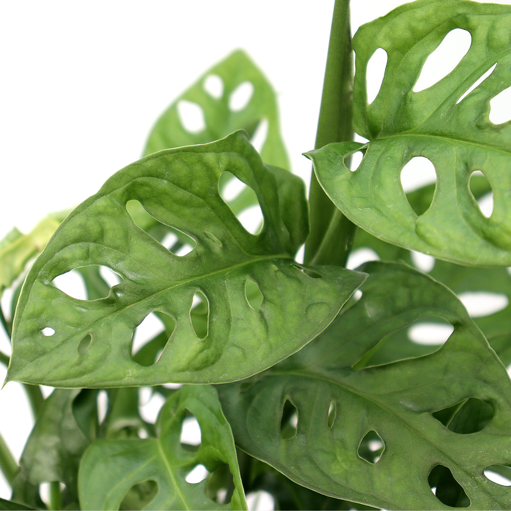 Monstera adansonii, also known as the Swiss Cheese Plant, is a tropical plant that is native to Central and South America and has been cultivated as a houseplant. The Monstera adansonii is recognized by its petite, perforated leaves. This plant also has a lovely trailing growth habit. The adansonii is great for hanging baskets, draping off shelves, or training to grow around a room.