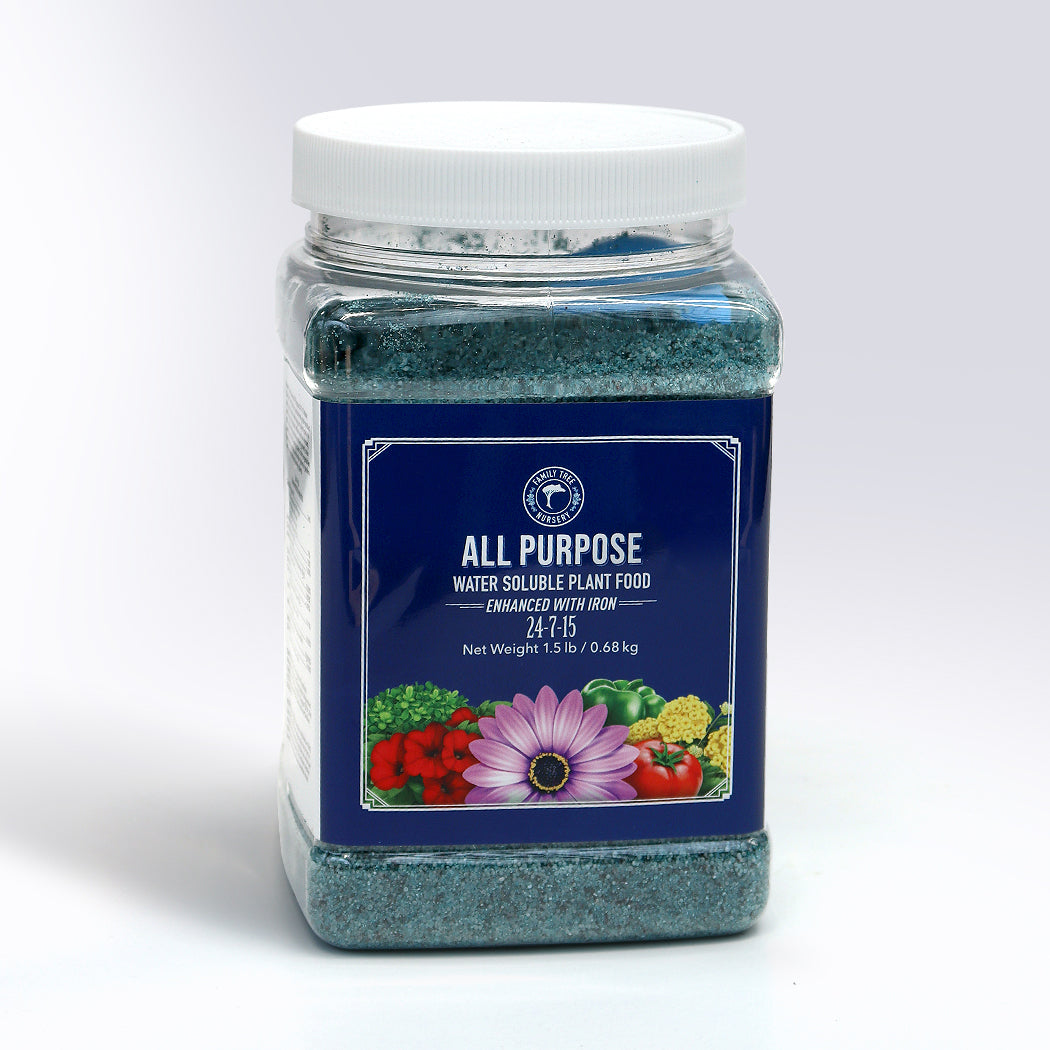 Our All Purpose 24-17-15 Water Soluble Plant Food is a professional grade product designed to feed a wide range of plants. When used as directed, this product will promote excellent growth, color and blooms in houseplants.
